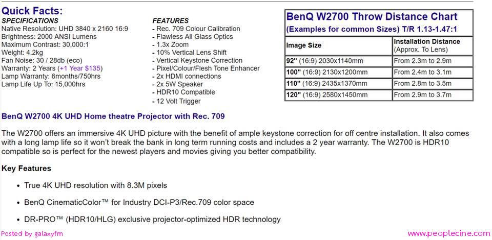 ออกข่าวไปเงียบๆกับ BenQ #W2700 4K UHD Projector ตัวใหม่ล่าสุดกับสเปคที่เรียกได้ว่าจัดเต็มสุดๆ ถ้าเป็นรถก็เรียกได้ว่า Full Option กันเลย หัวใจหลักอยู่ที่ชิ้นเลนส์ที่นำมาใช้ สำหรับราคาให้เดาก็น่าจะอยู่ราวๆ 89,900 บาท ส่วนของจะมาไทยเมือไหร่ ไม่อาจทราบได้ เพราะเข้าไปดูในเวปไซต์ ข้อมูลถูกลบไปหมดแล้ว ถ้าให้แอดมินฟังธงละก็ครึ่งปีหลัง 2019 #นี่คือสเปคมาตราฐานของทุกยี่ห้อ