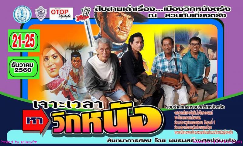 จัดงานใหญ่สืบสานเล่าเรื่องเมืองวิกหนังตรัง มีขึ้นระหว่างวันที่ 21- 25 ธันวาคม 2560 นี้ ณ.ลานห้องศูนย์วัฒนธรรมเทศบาลนครตรัง ในงานมีวาดภาพ คัดเอาท์ ภาพยนตร์ วาดเขียนโปสเตอร์โชว์สดๆ มีโชว์ใบปิดภาพยนตร์เก่าๆที่หาดูยากมาแสดง เป็นนิทรรศการ และกิจกรรม สร้างสรรค์ ส่งเสริมอนุลักษณ์ภาพยนตร์ไทย และจัดเสวนาเรื่องหนัง และมีการแสดงโนราห์ จัดทำรถแห่หนังย้อนยุค มีภาพยนตร์มาฉายให้ชมฟรี