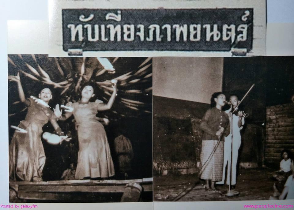 “หน้าโรงหนังทับเที่ยงภาพยนตร์” จะมีวงดนตรีบรรเลงเพลงมาร์ชสี่เหล่าทัพ เพื่อเรียกความสนใจคนดู พอเสียงแตรวงดังขึ้น ทุกคนทำกิจกรรมอะไรอยู่ก็ทิ้งหมด รีบวิ่งหน้าตั้งมุ่งตรงไปที่โรงหนัง ซึ่งมีนักแสดงผู้หญิงโชว์การแสดงบนเวที แต่งกายด้วยกระโปรงยาวชุดสีสวยสด พร้อมทั้งดนตรีบรรเลงเพลงประกอบ นักดนตรีที่เล่นมี 10 คน เครื่องดนตรีมี กลอง ปี่ ฉิ่งฉับ ทรัมเป็ต ทรอมโปน คารีเน็ต พอหนังฉายก็จะเข้าไปบรรเลงเพลงต่อในโรงก่อนหนังฉายสัก 15 นาที จะมีนักร้อง 2ถึง 3 คนมาขับร้อง โชว์บนเวที เครื่องดนตรีที่ให้เล่นคือ ไวโอลิน เปียโน