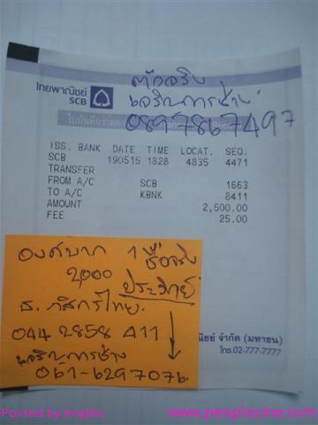 ภาพเอกสารการโอนเงินเมื่อวันที่ 19/5/58