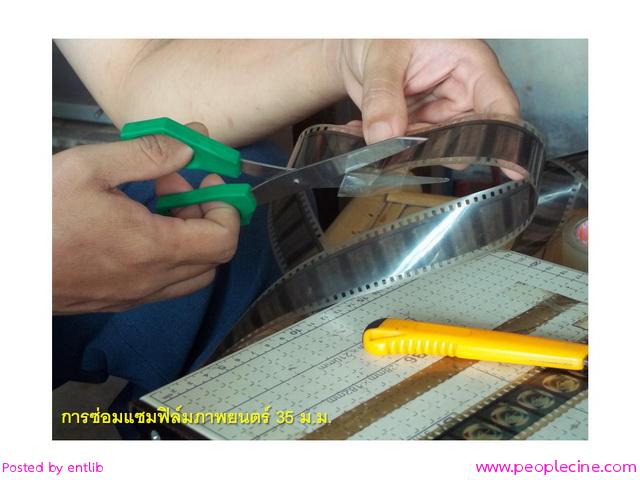วิธีการก็คือ หลังจากติดเทปใสขนาด 1/4 นิ้ว ที่ขอบฟิล์มทั้งสองด้านแล้ว ต้องมาทำการเจาะหนามเตยเอง ด้วยการนำเศษฟิล์มทองวางทาบบนฟิล์มแล้วใช้คัตเตอร์กรีดเจาะลงไปทีละช่อง จนครบ ไม่ต้องไปกังวลว่าเมื่อกรีดแล้ว ช่องหนามเตยจะใหญ่กว่าของเดิม หรือถี่กว่า หากใช้เครื่องฉาย 104 X-2 อยู่ก่อนแล้ว เพราะเครื่องฉายรุ่นนี้มีคุณสมบัติสามารถฉายกับฟิล์มธรรมดาที่หดตัวได้ ซึ่งอาจจะเห็นขอบหนามเตยแว่บขึ้นมาในบางช่วง ก่อนหน้านี้เคยซ่อมแซมฟิล์มที่หนามเตยแตกยาวเป็นฟันเลื่อย หรือแหว่งหายไป ขนาด 1 - 2 นิ้ว เมื่อซ่อมแซมหนามเตยแล้วก็ยังใช้ฉายได้ตามปกติ จนกว่าภาพจะเต้น มองไม่เห็น หรือขาดผัวะขึ้นมาหลายครั้ง เป็นอันต้องทิ้งไปโดยปริยาย
