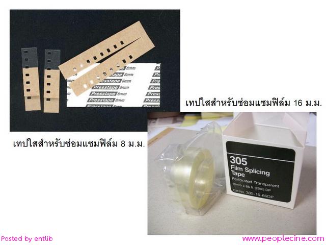 ที่เกริ่นไว้ในตอนต้น ปัจจุบันนี้ มีผู้ผลิตเทปใสสำหรับซ่อมฟิล์มภาพยนตร์โดยเฉพาะครับ มีทั้งแบบ 8 ม.ม. ธรรมดา, 8 ม.ม. ซูเปอร์, 9.5 ม.ม. ของบริษัทปาเต๊ะ, 16 ม.ม. และ 35 ม.ม. สำหรับการซ่อมแซมฟิล์มที่ขาดจากกัน ดังภาพประกอบ อย่างเทปใสซ่อมฟิล์ม 8 ม.ม. หรือ 8 ม.ม. ซูเปอร์ มีลักษณะเป็นแถบใสที่เจาะรูเหมือนฟิล์ม ซึ่งติดมากับกระดาษชนิดลอก คล้ายกับเทปโฟมชนิดสองหน้าที่คุ้นเคยกันดี ส่วนเทปใสสำหรับซ่อมฟิล์ม 16 ม.ม. และ 35 ม.ม. ก็มาเป็นม้วน ซึ่งตัวเทปใสถูกเจาะรูตรงกับหนามเตยของฟิล์มพอดี ตอนซื้อจะมีแผ่นพลาสติกแบบบางๆ ที่เจาะรูเหมือนฟิล์ม สำหรับกดให้เทปใสติดกับฟิล์ม