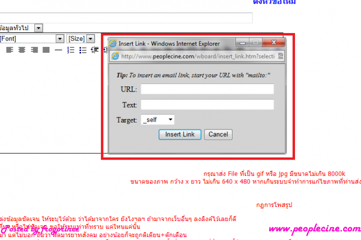 ปัญหาเกิดจากระบบป้องกันป๊อปอัพ ทำการกดไม่ให้มีการแสดงหน้าจอสำหรับแทรก link วิธีแก้ ( ทำครั้งแรกครั้งเดียว)