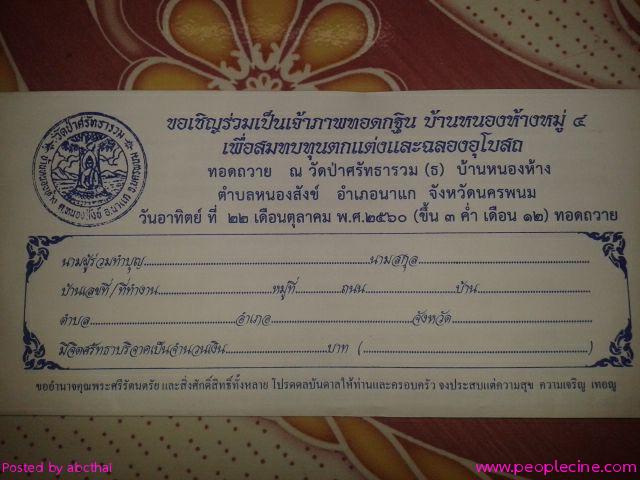 ร่วมทำบุญต่อยอดองค์กฐิน บ้านหนองห้างหมู่ที่ 4 เพื่อสมทบทุนตบแต่งและฉลองอุโบสถ ทอดถวาย ที่ วัดป่าศรัทธารวม(ธ) บ้านหนองห้าง ตำบลหนองสังข์ อำเภอนาแก จังหวัดนครพนม วันเสาร์ที่ 21 ตุลาคม 2560 ตั้งองค์กฐินที่โรงเรียนบ้านหนองห้าง วันที่ 22 ตุลาคม 2560 (ขึ้น 3 ค่ำ เดือน 12) ทอดถวายคะ (ท่านใดประสงค์จะร่วมทำบุญในครั้งนี้ โอนเข้าธนาคารไทยพาณิชย์ จำกัด (มหาชน) บัญชีเลขที่ 752-233780-4 ชื่อ ธนัชพร คำชมภู คะ