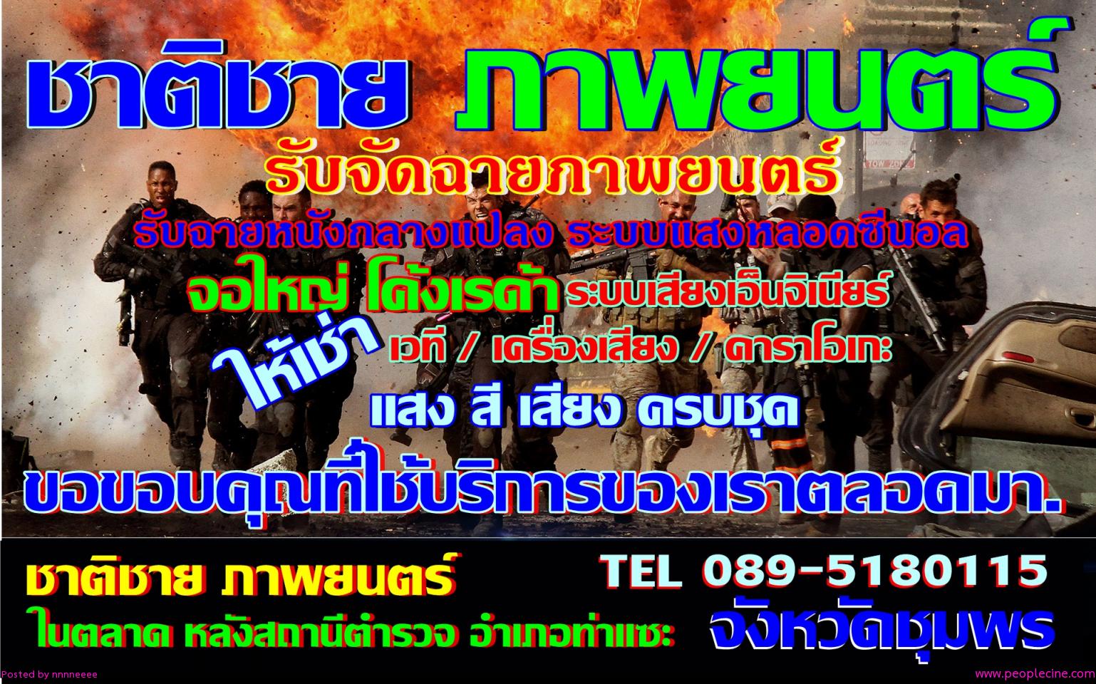 ชาติชาย ภาพยนตร์ อำเภอท่าแซะ จังหวัดชุมพร รับจัดฉายภาพยนตร์ / ให้เช่า เวที เครื่องเสียง ชุดคาราโอเกะ แสง สี เสียง ครบชุด