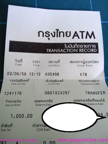 โอนเงินเรียบร้อยแล้วครับ จำนวน 1,000 บาท วันที่ 3/06/2556 เวลา 13.13 น.